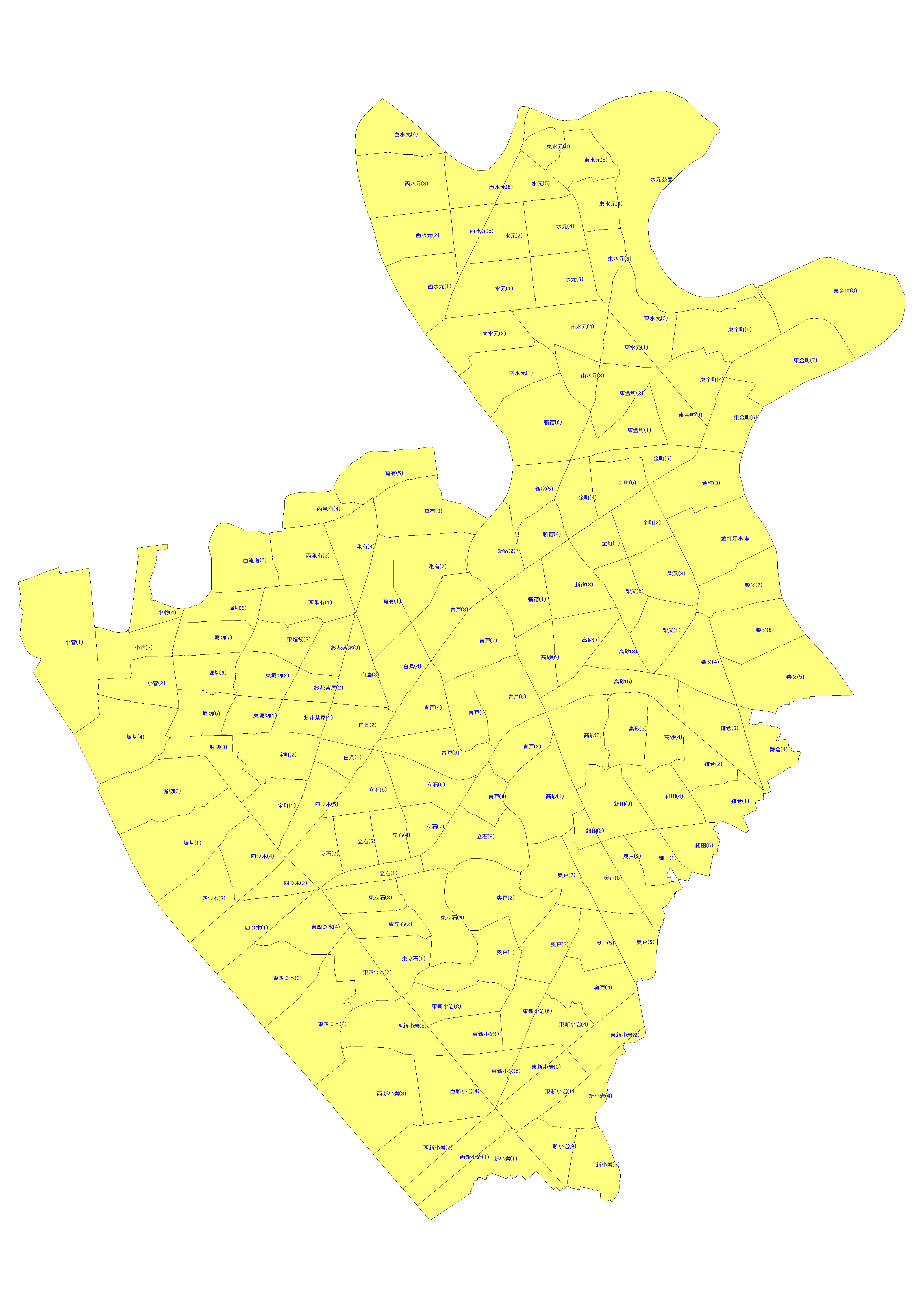 | 葛飾区柴又3丁目 | 1,723 | 3,851 | 86 | 573 | 1,098 | 1,300 |